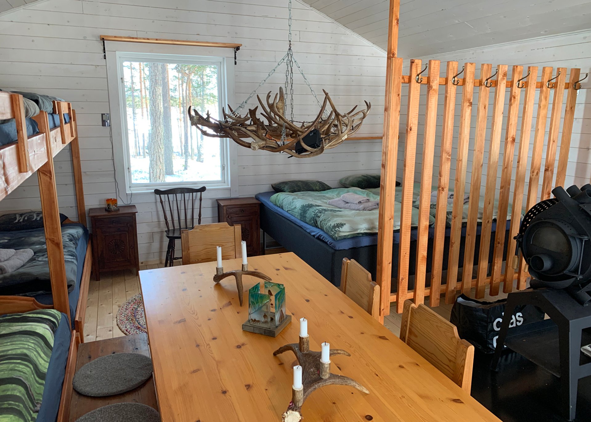 Abends kochen wir gemeinsam ein leckeres Abendessen. Die Luft ist klar doch der Himmel bewölkt. Über dem Lagerfeuer gibt es leckere schwedische Köstlichkeiten und wir verabschieden uns mit vollen Bäuchen in die einfache aber gemütlich Hütte. Wir träumen von den tanzenden Polarlichtern, die wir auf Grund des bewölkten Himmels verpassen. Am nächsten Morgen machen wir uns nach einem ausgiebigen Frühstück auf den Rückweg Richtung Hundefarm. Es geht wieder auf dem Hundeschlitten durch verschneite Landschaften mit Halt an einem Zelt, wo wir uns für die Rücktour stärken. Wir verabschieden uns von Morgan und den Hunden. Die letzten zwei Tage in Schwedisch-Lappland und Morgan werden so schnell nicht vergessen.