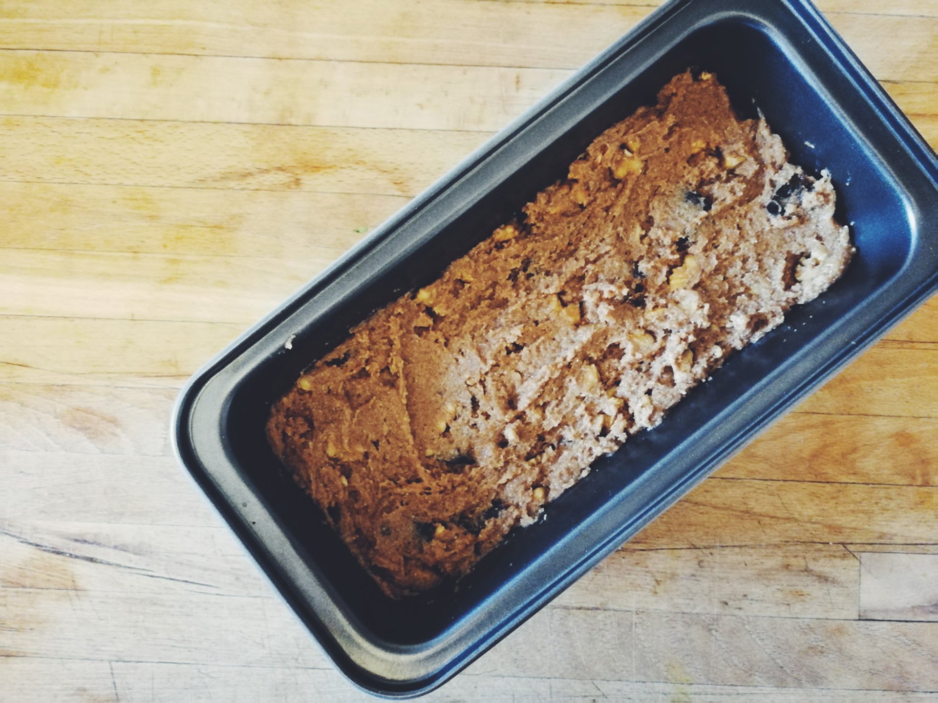 Mehl, Backpulver, Salz, Zimt und Zucker miteinander vermischen. Die Butter im Topf schmelzen und mit dem Gemisch vermengen, das Ei dazu und alles zu einer geschmeidigen Masse verkneten. Am Ende die geviertelten getrocketen Pflaumen und die Walnusskerne hinzugeben. Den Teig entweder selbst formen oder in eine Form geben.