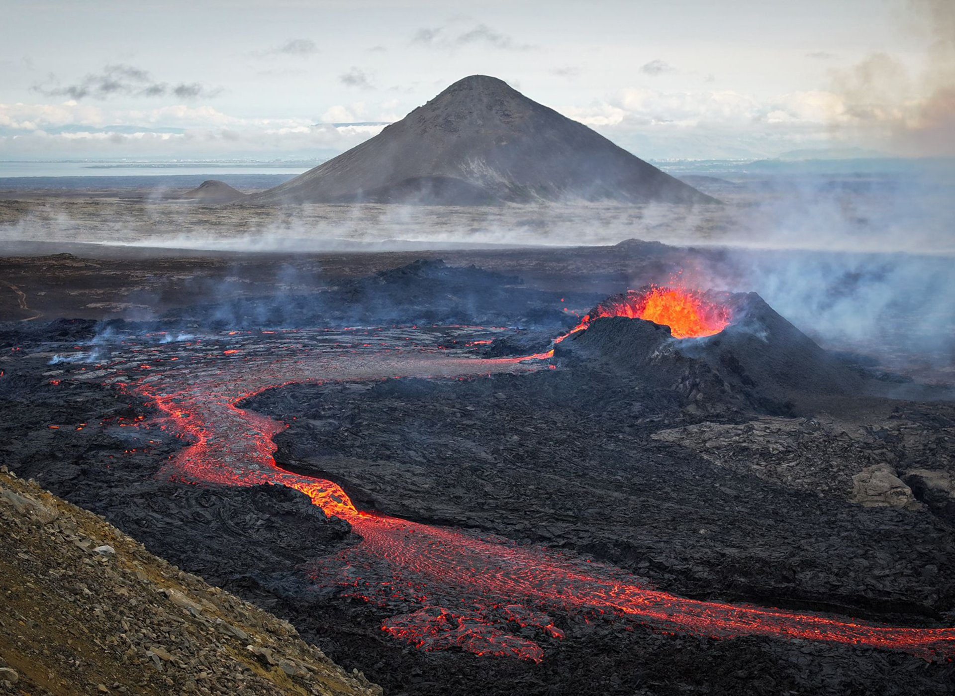 Der Fagradalsfjall zählt zu den jüngeren Ausbrüchen der Insel und hat 2021 eine neue Vulkanaktivität auf der Halbinsel Reykjanes eingeläutet. Dieses Gebiet mit seinen neuen Lavalandschaften ist durch verschiedene ausgeschilderte Wanderwege zugänglich, sofern keine aktuellen Warnungen bestehen. Der Ausbruch wurde damals als „Touristenausbruch“ bezeichnet, da er weit weg von Zivilisation und doch in einem relativ gut zugänglichen Gebiet stattfand. Generell sollte man Vulkanausbrüche nie auf die leichte Schulter nehmen, da immer ein Restrisiko besteht. Aktuell ist ein paar Kilometer weiter westlich das Vulkansystem Svartsengi aktiv, was zur zeitweisen Evakuierung von Grundavik im Süden der Halbinsel führte. Zu den Zeiten der Ausbrüche war der naheliegende Flughafen oder die Flüge nie betroffen.