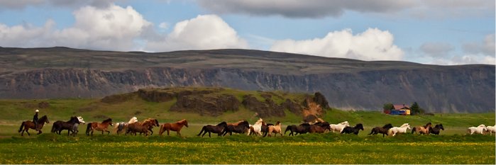 Reisecharakter … Auf dieser Strecken-Reittour werden Sie die kontrastreiche Landschaft und die berühmten Highlights Südwest-Islands vom Pferderücken aus kennenlernen. Nach alter Tradition reiten wir auf einigen Streckenabschnitten mit einer freilaufenden Herde von Wechselpferden, sodass eine Reihe von guten Reitpferden mit unterschiedlichen Eigenschaften zur Verfügung steht und für jeden Reitertyp passende Pferde ausgewählt werden können. Die Etappe am Ende der Tour legen wir mit einem Pferd pro Reiter zurück. Wir folgen sanften Wegen und reiten über Lavafelder zum Þingvallavatn, dem größten See Islands. Wir besuchen das Allthing inmitten einer markanten geologischen Umgebung, das Geothermalgebiet Geysir sowie den berühmte Wasserfall Gullfoss. Auf unserem Weg Richtung Osten passieren wir das südliche Hochland zwischen Flüssen mit Blick auf Gletscher und Berge, einen isländischen Wald und weitere Wasserfälle. Unser Gepäck wird während der Reittour von einem Begleitfahrzeug zu den jeweiligen Unterkünften transportiert.