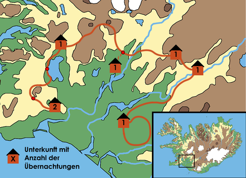 Diese Reittour für erfahrene Reiter führt uns zu den berühmten Attraktionen Südwest-Islands und in die ruhigen Weiten des isländischen Hochlands. Vielfältige Landschaften liegen auf unserem Weg von der Farm Vellir bei Hveragerði, vorbei am Vulkan Hengill zum Nationalpark Þingvellir und weiter zu den berühmten Island-Attraktionen Geysir und Gullfoss. Von hier machen wir einen Abstecher ins karge Hochland und folgen dem Gletscherstrom Þjórsá zurück in die fruchtbaren Ebenen am Fuß des berüchtigten Vulkans Hekla. Zu Beginn der Tour erhalten wir eine Einweisung in die Gangarten des Islandpferds und das Reiten mit freilaufender Herde. Wir sind täglich vier bis neun Stunden unterwegs, übernachten in Schlafsackunterkünften und werden überall voll verpflegt ...