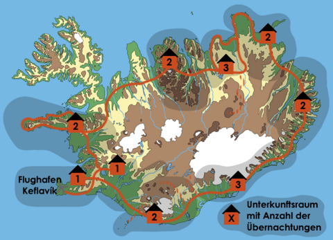 Reisecharakter ... Auf dieser Individualreise erkunden Sie die auf Ihrer Route liegenden Regionen Islands auf eigene Faust. Hierbei können sie entweder unseren Vorschlägen folgen oder Ihre eigenen Wünsche umsetzen. Abgesehen von gebuchten Leistungen wie Unterkünften und Mietwagen sowie An- und Abreise haben Sie keine verbindlichen Termine während der Tour. Ausflüge und Aktivitäten lassen sich auf Wunsch in den Reiseverlauf integrieren. Je nach persönlichem Interesse und Lage Ihrer Unterkunft innerhalb einer Region kann es sinnvoll sein, vom Timing des von uns skizzierten Reiseverlaufs abzuweichen.