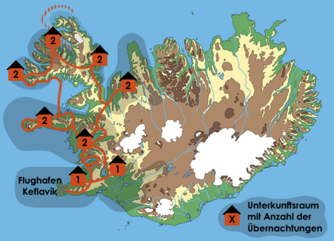 Reisecharakter ... Auf dieser Individualreise erkunden Sie die auf Ihrer Route liegenden Regionen Islands auf eigene Faust. Hierbei können sie entweder unseren Vorschlägen folgen oder Ihre eigenen Wünsche umsetzen. Abgesehen von gebuchten Leistungen wie Unterkünften und Mietwagen sowie An- und Abreise haben Sie keine verbindlichen Termine während der Tour. Ausflüge und Aktivitäten lassen sich auf Wunsch in den Reiseverlauf integrieren. Je nach persönlichem Interesse und Lage Ihrer Unterkunft innerhalb einer Region kann es sinnvoll sein, vom Timing des von uns skizzierten Reiseverlaufs abzuweichen.
