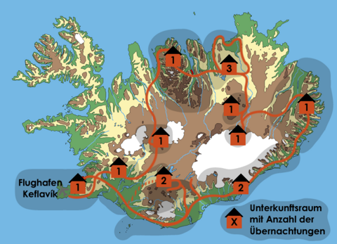 Auf dieser Individualreise erkunden Sie die auf Ihrer Route liegenden Regionen Islands auf eigene Faust. Hierbei können sie entweder unseren Vorschlägen folgen oder Ihre eigenen Wünsche umsetzen. Abgesehen von gebuchten Leistungen wie Unterkünften und Mietwagen haben Sie keine verbindlichen Termine während der Tour. Ausflüge und Aktivitäten lassen sich auf Wunsch in den Reiseverlauf integrieren. Je nach persönlichem Interesse und Lage Ihrer Unterkunft innerhalb einer Region kann es sinnvoll sein, vom skizzierten Reiseverlauf abzuweichen.