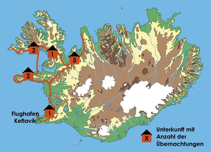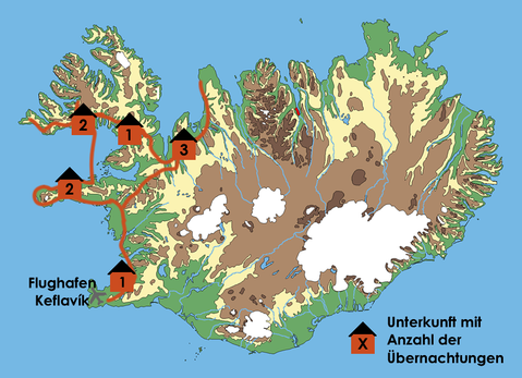 Am Ankunftstag werden Sie entweder am internationalen Flughafen Keflavík zwischen 15:00h - 16:30h oder um 17:30h in Reykjavik an der Tankstelle N1, Ártúnshöfði am Vesturlandsvegur in Richtung Norden stadtauswärts mit dem Minibus abgeholt. Bitte geben Sie Ihren Anreisewunsch und Ihre Handynummer zur Koordination vor Ort in der Anmeldung an. Am Abreisetag bringt der/die Reiseleiter/in alle Teilnehmer morgens um 5:00 Uhr mit dem Minibus zum Flughafen. Alternativ nutzen Sie den Shuttlebus, um zum internationalen Flughafen Keflavík zu gelangen. Die Kosten teilen wir Ihnen gerne mit.