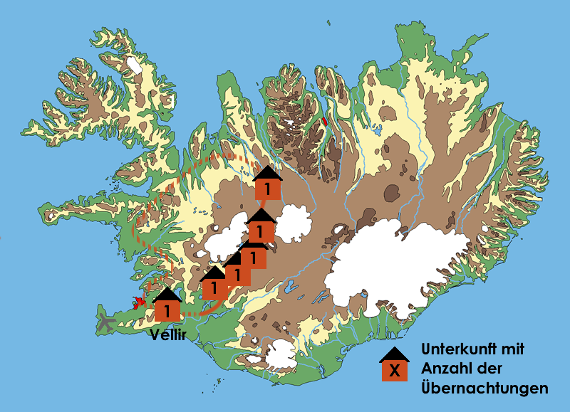 Am ersten Tag der Reittour werden Sie direkt an Ihrer Unterkunft oder am zentralen Busbahnhof BSÍ in Reykjavík zwischen 17:30h und 18:00h von einem Mitarbeiter der Farm Vellir abgeholt. Alternativ reisen Sie selbständig nach Vellir an. Bitte geben Sie Ihren Anreisewunsch in der Anmeldung an. Am letzten Tag der Reittour erhalten Sie spät nachmittags einen Transfer zurück zum zentralen Busbahnhof BSÍ in Reykjavík. Abhängig von Ihrem Rückflug ist ggf. eine Zusatzübernachtung nach der Reittour nötig, die wir ebenfalls für Sie organisieren können. Auf Anfrage teilen wir Ihnen gerne die entsprechenden Möglichkeiten und Konditionen mit. Auch einen Gutschein für den Transfer vom Flughafen Keflavík nach Reykjavík und/oder umgekehrt mit dem Flybus integrieren wir auf Wunsch gerne für Sie.