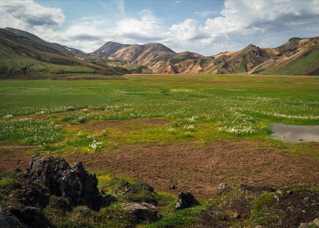 Nach einigen Kilometern auf der Ringstraße biegen wir bei Kirkjubæjarklaustur ins Hochland ab. Eine Schotterpiste mit kleineren Flussdurchquerungen führt uns zur Feuerspalte Eldgjá. Nach kurzer Fahrt ist unser nächstes Ziel das Liparitgebirge Landmannalaugar. Aktive unternehmen eine Wanderung auf den Aussichtsberg Bláhnúkur. Wer es lieber ruhig angehen lässt, entscheidet sich für ein Bad in einer heißen Quelle. An den Ausläufern des berühmten Vulkans Hekla entlang fahren wir zu unserer Unterkunft … ÜN Südwest-Island