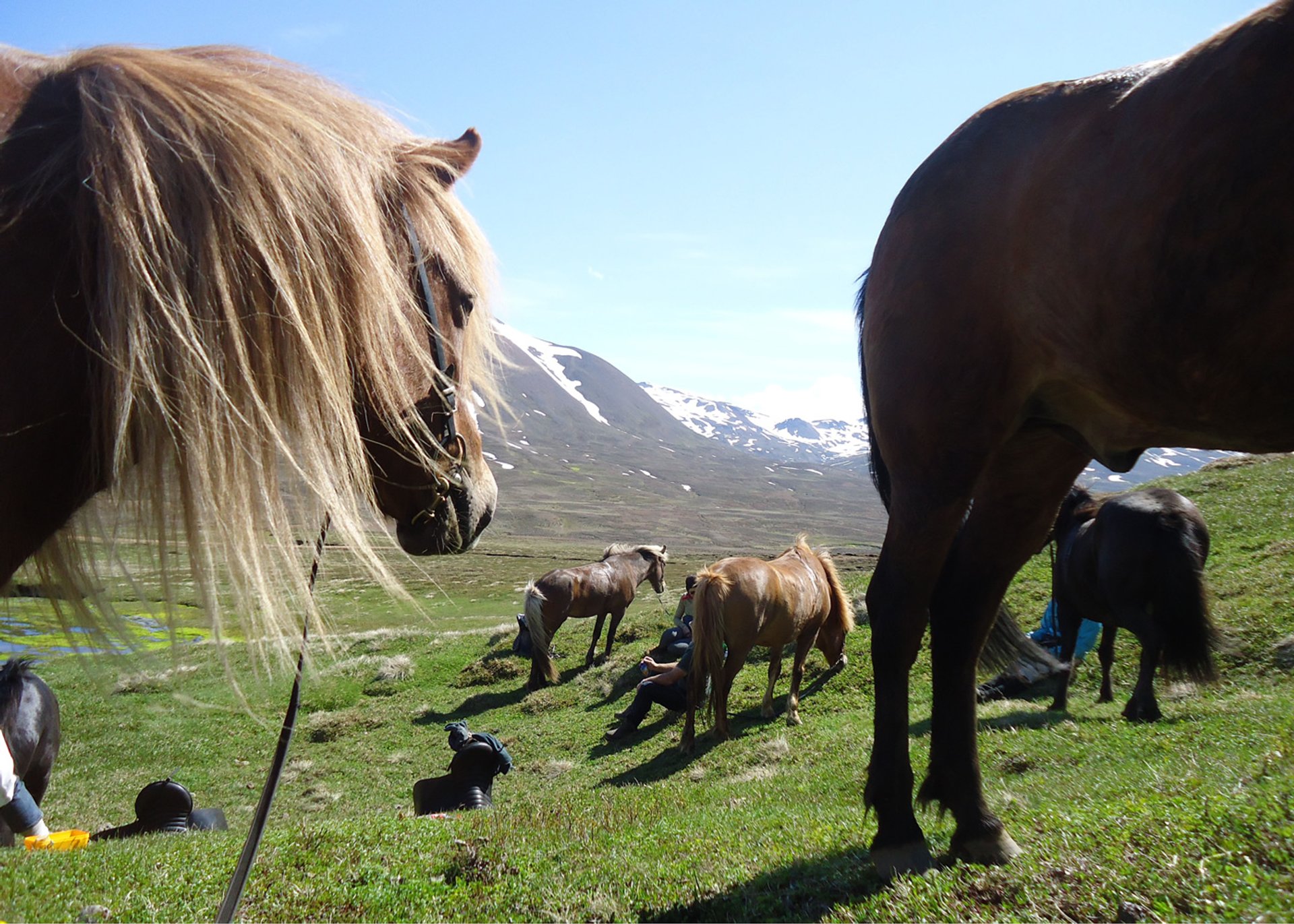 Ein letztes Mal satteln wir unsere treuen Begleiter und brechen zu einem etwa 4- bis 5-stündigen Abschiedsritt in die Berge auf. Unser Ziel ist das weitläufige Tal Fjörður, welches im Sommer von etwa 4.000 Schafen bevölkert wird. Die Mutterschafe der umliegenden Farmen verbringen den gesamten Sommer zusammen mit ihren Lämmern im Tal, bevor Sie im September wieder nach Hause getrieben werden. Über die Anhöhe Leirdalsheiði, Flusslandschaften und steinige Pfade reiten wir heimwärts und werfen einen letzten Blick auf den schönen Fjord Eyjafjörður. Beim gemeinsamen Abendessen schwelgen wir noch einmal in Erinnerungen an die letzten Tage voller Reit- und Naturerlebnisse ... ÜN Nord-Island/Grýtubakki
