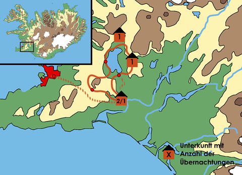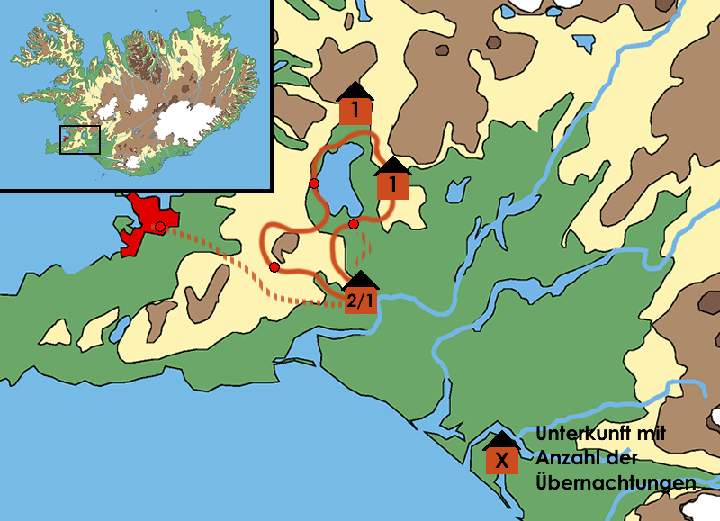 Unterkunft & Verpflegung … Auf dieser Reittour übernachten wir sowohl im Gästehaus Eldhestar/Vellir in Doppel- oder Mehrbettzimmern mit Etagendusche/WC (gemachte Betten) als auch in einfachen Hochlandhütten im Schlafsaal (Schlafsackunterkunft).Während der Tour werden wir voll verpflegt (siehe Leistungen).