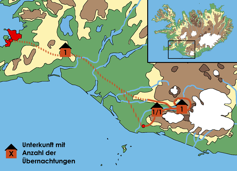 Unterkunft & Verpflegung … Wir übernachten sowohl in Gästehäusern in Doppel- bzw. Mehrbettzimmern als auch in einfachen Hochlandhütten im Schlafsaal (Schlafsackunterkunft). Die erste Nacht der Tour verbringen wir im Gästehaus Eldhestar/Vellir in Doppel- oder Mehrbettzimmern mit Etagendusche/WC (gemachte Betten). Während der Tour werden wir voll verpflegt.