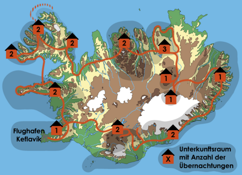 Auf dieser Individualreise erkunden Sie die auf Ihrer Route liegenden Regionen Islands auf eigene Faust. Hierbei können sie entweder unseren Vorschlägen folgen oder Ihre eigenen Wünsche umsetzen. Abgesehen von gebuchten Leistungen wie Unterkünften und Mietwagen haben Sie keine verbindlichen Termine während der Tour. Ausflüge und Aktivitäten lassen sich auf Wunsch in den Reiseverlauf integrieren. Je nach persönlichem Interesse und Lage Ihrer Unterkunft innerhalb einer Region kann es sinnvoll sein, vom skizzierten Reiseverlauf abzuweichen.